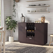 Nahvina Modern Espresso Stemware and 6-Bottle Wine Bar Cabinet