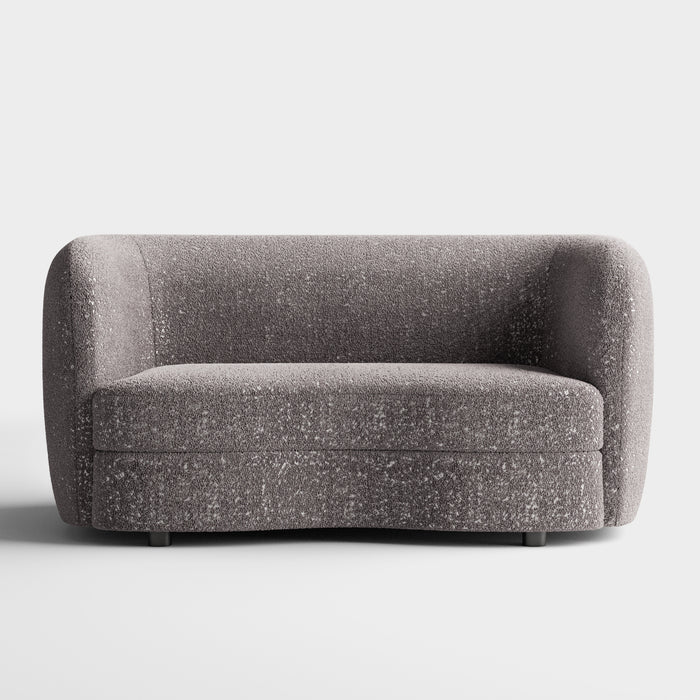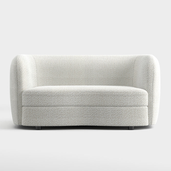 Ophelia Modern Curved Arms Boucle Loveseat Couch with Kidney Style Seat and Round Wooden Legs