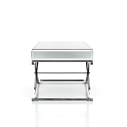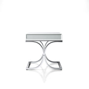 Alluring glam design with soft romantic elements yields elegance in this modern metal coffee table set. Enjoy the ornately curved end units that contrast with a linear, modern tabletop, injecting fresh energy into any room. With a blend of metal tubing and a mirrored glass top, these decadent, chrome finish tables present a perfect mix of motifs that adapt to custom interior decor.