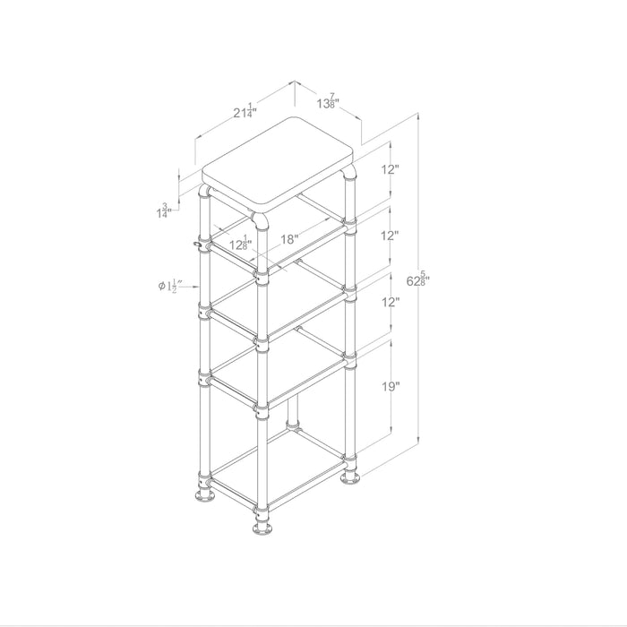 Ryder Antique Black & Copper Accented Pipe Metal 5-Tier Pier Shelf