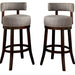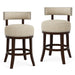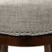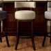 Ensure a comfortable, inviting, and sophisticated spot to sit and stay for a spell with this pair of swivel stools. Rich upholstery meets brown cherry finished legs for a marriage of classic and contemporary style. The seat and backrest are graced with a nailhead trim that creates a sense of structure and dimensionality that pairs perfectly with flared legs and graceful curves.