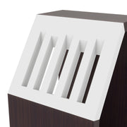 - Ingenious slats in a contrasting white finish panel double as a book rack to keep your current reads organized or to show off favorites