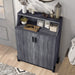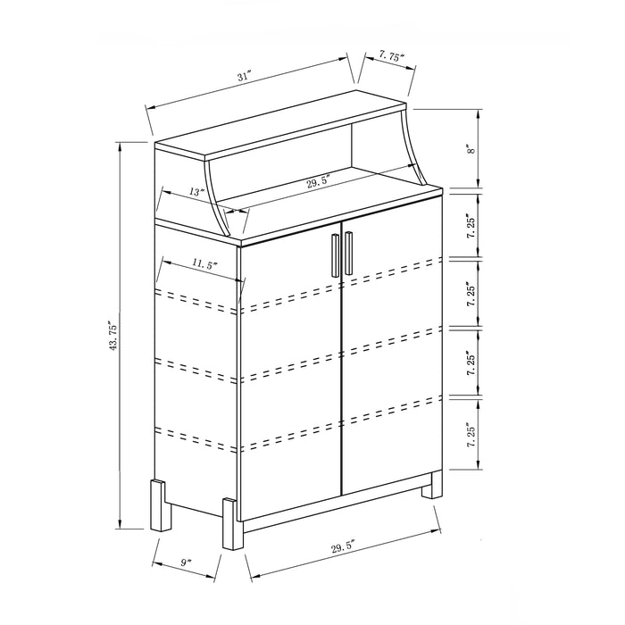 Minimalist-inspired style and ample storage make the cabinet a charming addition to any entryway. Double doors conceal five shelves with storage space for up to 12-pairs of shoes, while the open shelves welcome a place for keys and mail upon entry.