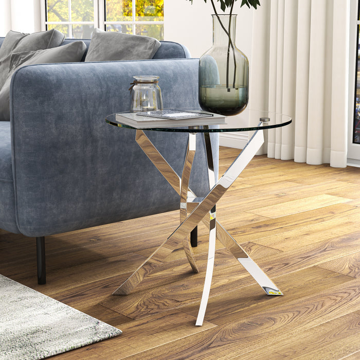 Overlapping and crisscrossing metal beams set the scene for its glam yet artsy appeal, while a tempered glass table is delicately placed on top to display your favorite d矇cor pieces.